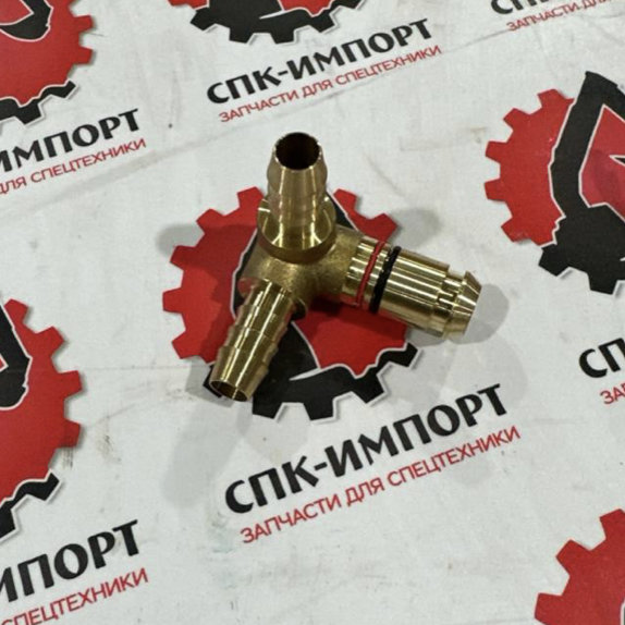 Пневматический фитинг (тройник угловой) для грузовиков Shacman (Shaanxi) серий F3000, X3000, X5000, предназначенный для разветвления трубопроводов сжатого воздуха под углом 90° в пневматических системах автомобиля.
